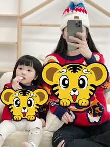 2022新年款儿童毛衣虎年亲子装冬一家三口母子母女...