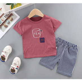 儿童短袖套装家居服夏季T恤宝宝衣服男女童短裤两件套...