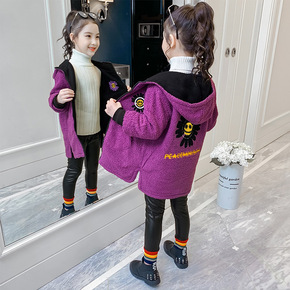 女童外套2021新款羊羔毛正反两穿小女孩卫衣开衫秋...