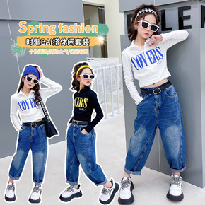 童套装2022春季新款男女童套装 中大童ins风印...