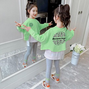 包邮女童春秋季套装2021新款中大儿童洋气卫衣童装...