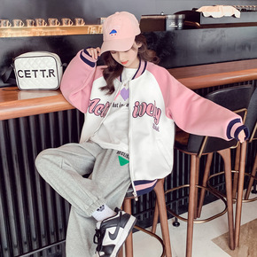 54412春季新款儿童拉链外套套装休闲运动服个性拼...