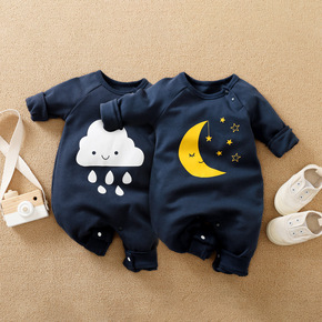 跨境新款婴儿衣服春秋装新生儿连体衣棉质月亮宝宝爬服...