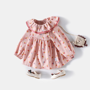 婴儿秋季2021新款女童洋气连衣裙子春秋装女宝宝衣...
