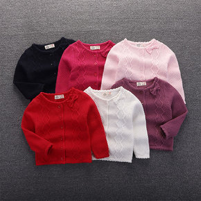毛衣加工春秋新款童装儿童蝴蝶结外套针织开衫长袖女宝...