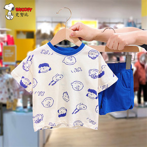 儿童两件套2022夏装新款史努比裤套装棉韩版短袖男...