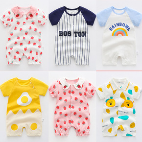 2022夏装婴儿短袖连体衣夏季宝宝套头哈衣薄款新生...