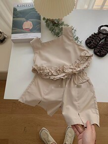 韩版童装2022夏季时髦女童套装洋气背心宽松阔腿短...