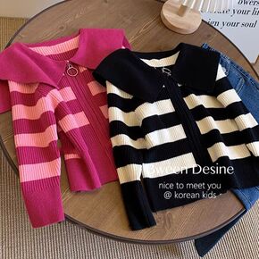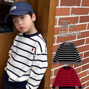 2021秋季批发韩版可爱条纹中大童装套头毛衣长袖圆...