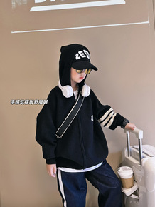 秋冬季新款韩版男童加绒毛衣外套中小童男童保暖拉链开...