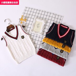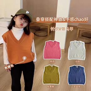 女童毛衣秋装中小V领针织马甲2021新款洋气上衣儿...