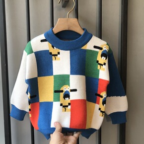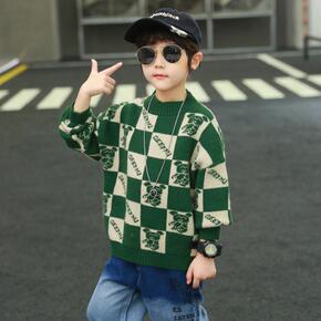 中大童毛衣2022秋冬新款韩版童装洋气格子圆领套头...