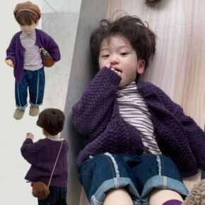 儿童韩版复古开衫麻花简约毛衣男女童秋季新款上衣潮装...