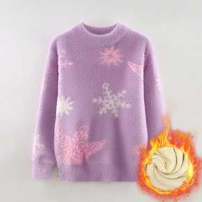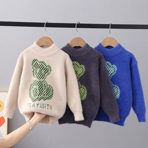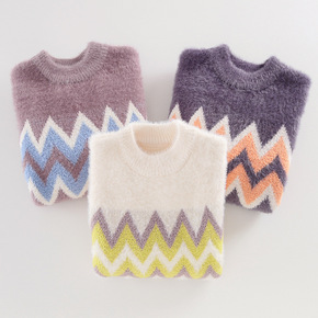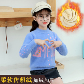 秋冬女童加绒加厚童装圆领针织衫中大儿童仿貂绒毛衣女...