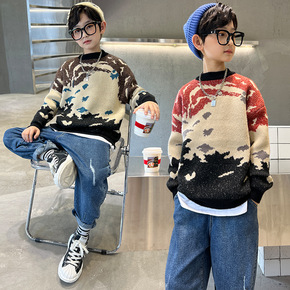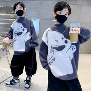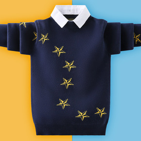 大童毛衣男童加厚纯棉衫8-15岁儿童装针织衫套头衫...