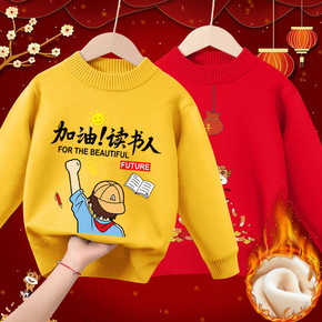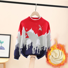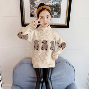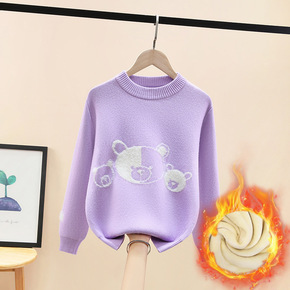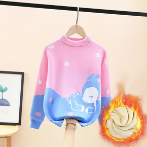 女童加绒毛衣儿童圆领加厚针织打底衫秋冬款童装宝宝套...