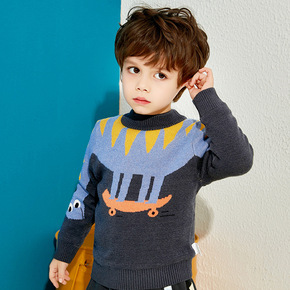 儿童加绒毛衣男童毛衫加厚款男孩双层毛衣新款滑板恐龙...
