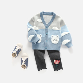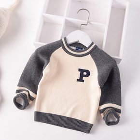 男童加绒毛衣2022年冬季新款婴幼童宝宝拼色儿童套...