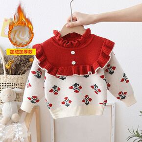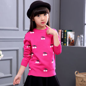 女宝女童毛衣加厚套头毛衣女婴儿童秋冬装女童小樱桃打...