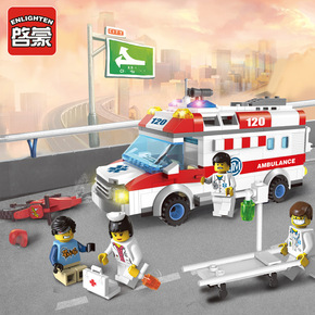 小颗粒拼装积木紧急救护车120模型城市系列医院汽车...