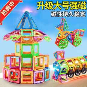 磁铁积木提拉纯磁力片大号儿童益智玩具3-8岁男孩拼...