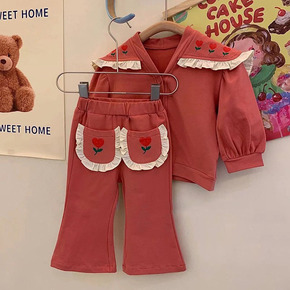 春秋款男女100%棉童卫衣套装两件套儿童时尚洋气炸...