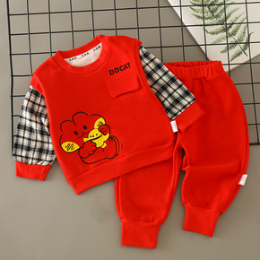 版长袖套装儿童休闲-岁男童卫衣棉两件套一件代发...