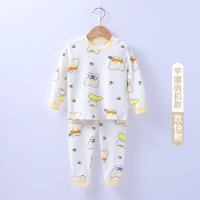 N儿童内衣套装纯棉男女中小童家居服宝宝圆领肩扣睡衣...