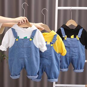 一件代发纯棉女童套装2022秋装宝宝针织背带裤小童...
