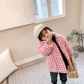 男女童棉衣中长款韩国冬季新品宝宝洋气加绒格子棉服儿...