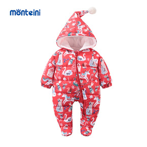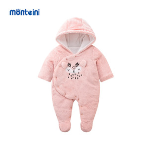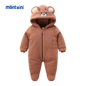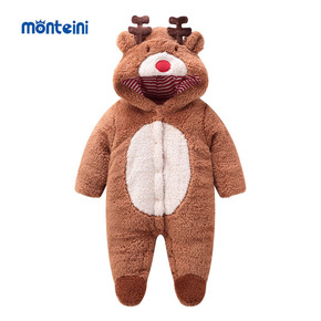 宝宝泰迪绒连体棉服连帽0-1岁婴儿网红造型卡通外出...