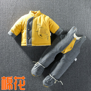 初生儿手工棉花棉衣套装包脚新生的儿加厚外出服连脚冬...