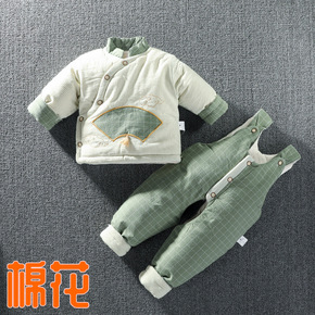 婴儿纯手工棉衣唐装新生儿棉花棉袄棉服套装宝宝夹棉背...