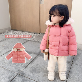 吾里卜一女童兔毛领连帽棉服新款冬装儿童洋气简约时尚...