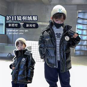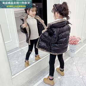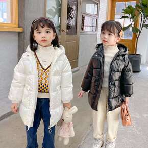 儿童棉服服冬季中长款2021新款中大童加厚冬装亮面...