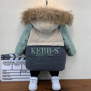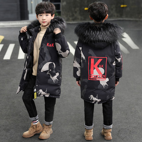 2021新款男童冬装加厚中长款棉衣中大童冬季大毛领...