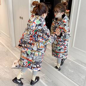 女童羽绒棉服中长款2021款洋气儿童长款过膝韩版男...