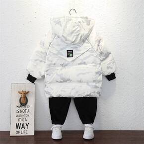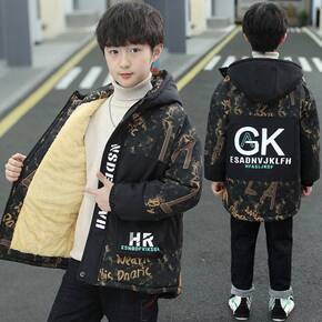 男童棉衣外套加绒加厚派克服冬装迷彩棉服2021冬款...