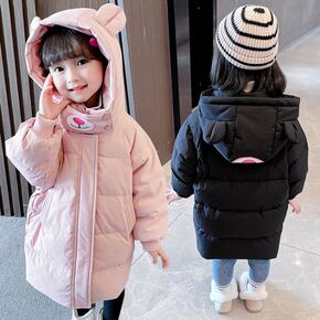 女童棉服2021新款女孩洋气加厚中长款宝宝冬装1-...