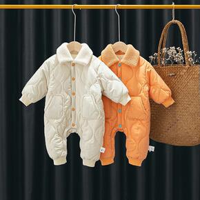 婴儿棉服连体衣0一1岁女宝宝加厚保暖冬季爬服男外出...