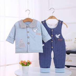 婴儿薄棉衣套装秋冬夹棉加儿衣服01-2岁宝宝背带裤...