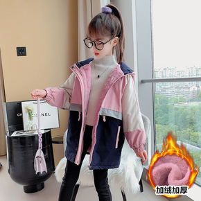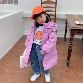 冬季新款男女童装儿童小孩中大童连帽加大中长款连帽保...