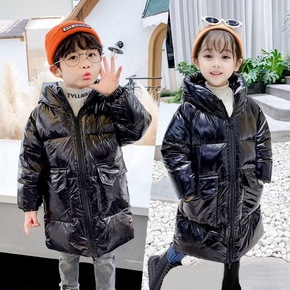 新款儿童宝宝白鸭绒羽绒服加厚男女童中大童中长款亮面...