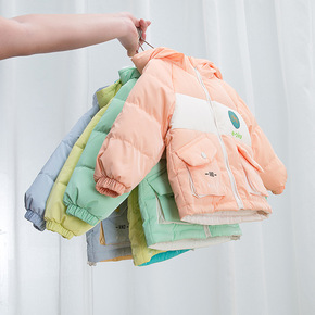 冬季新款男童女童中小儿童小孩连帽加厚保暖羽绒服免洗...