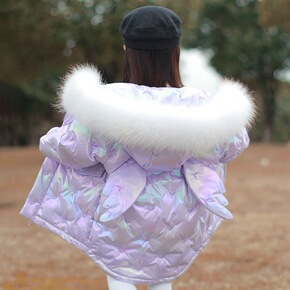 【不退不换清款】冬季中小女童宝宝韩版大翻领棉服儿童...