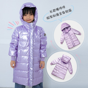 儿童羽绒服女童亮面免洗洋气白鸭绒中小童装中长款女宝...