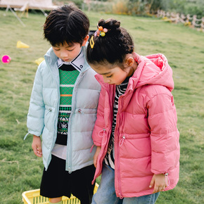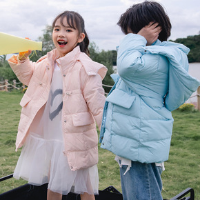冬季新款男女儿童小孩中大童装 连帽亮色长袖保暖羽绒...