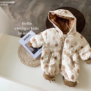 2019现货冬季欧美中性连体衣长袖爬儿童羽绒服...