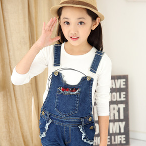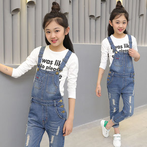 童装女童牛仔背带裤春秋款中大童背带裤2020新款秋...