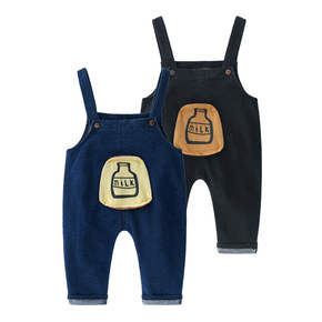 韩版童装童裤 韩版休闲儿童印奶瓶牛仔背带裤一件代发...